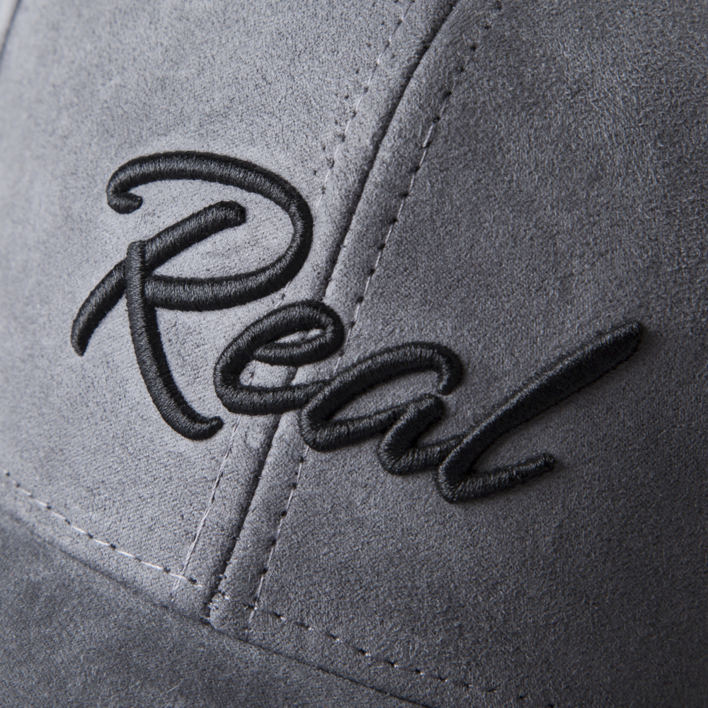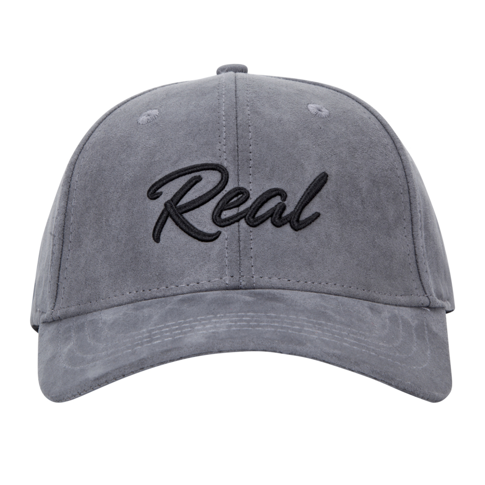 The grey suede design is available with the raised 3D Real logo in either black or white. Both styles offer a fresh look for you to keep your cool when the heat is on. With breathable eyelets and an adjustable strap, one size fits all.